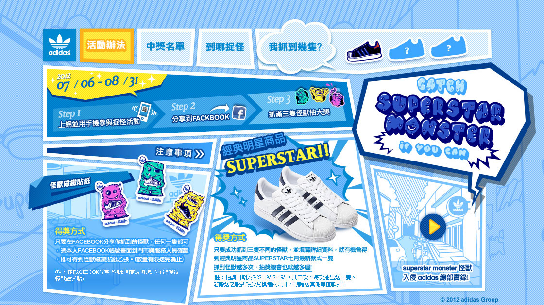 怪獸偷走了 superstar鞋,急需網友來尋找!玩家可透過手機前往實體門市掃 Qrcode及透過網路媒體banner點擊前往活動網站緝捕怪獸